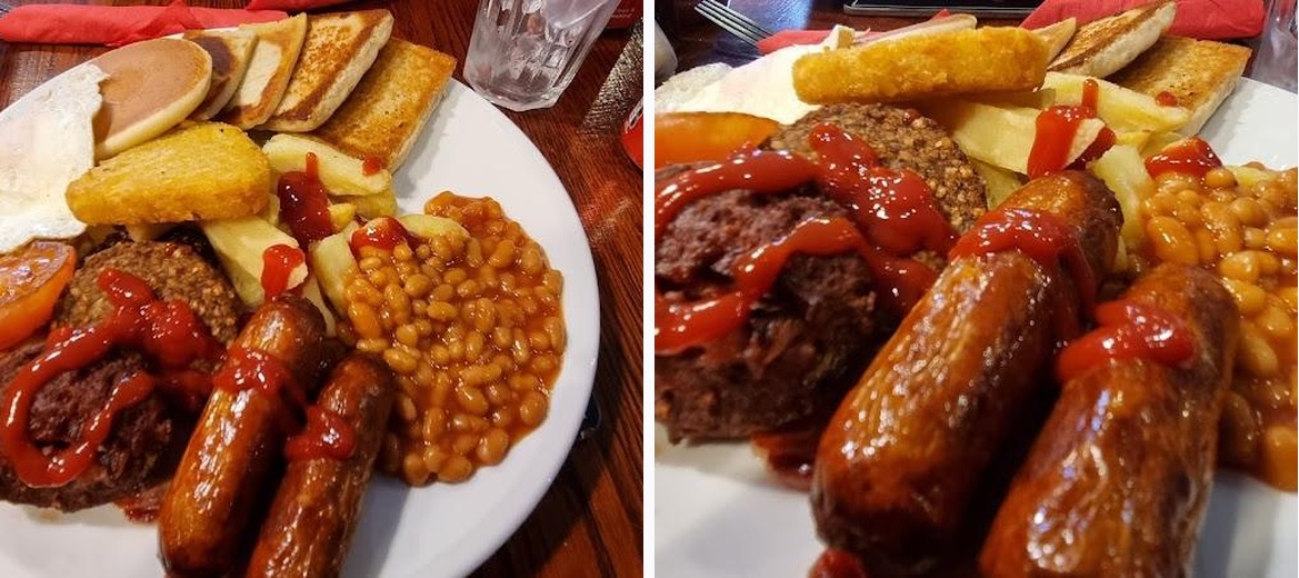 Best meal we had in Northern Ireland! The menu is pretty standard with options to fill everyone to their content! Staff are super friendly & welcoming. This was one of the very few places that offered vegetable roll with their breakfasts. My husband & son were thrilled! They each ordered the Big Sizzling Brekkie & my son didn’t leave a crumb on his plate! My husband couldn’t finish all of the carbs but made a meal out of all the protein! I had standard eggs & soda bread with chips! I would have liked an extra egg but I know for next time! Will definitely visit here next time I’m in Northern Ireland!